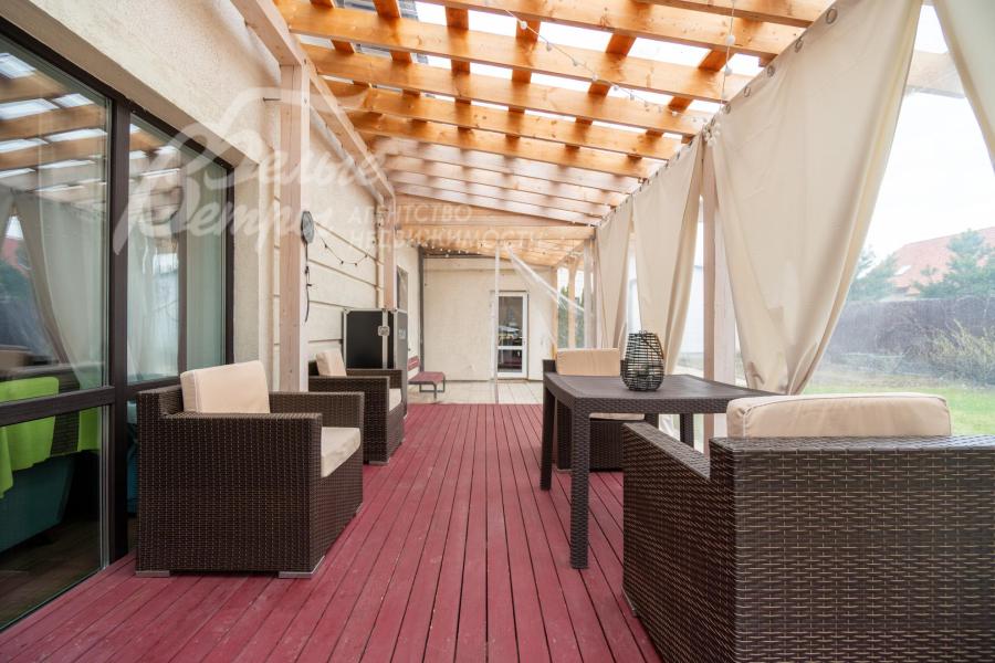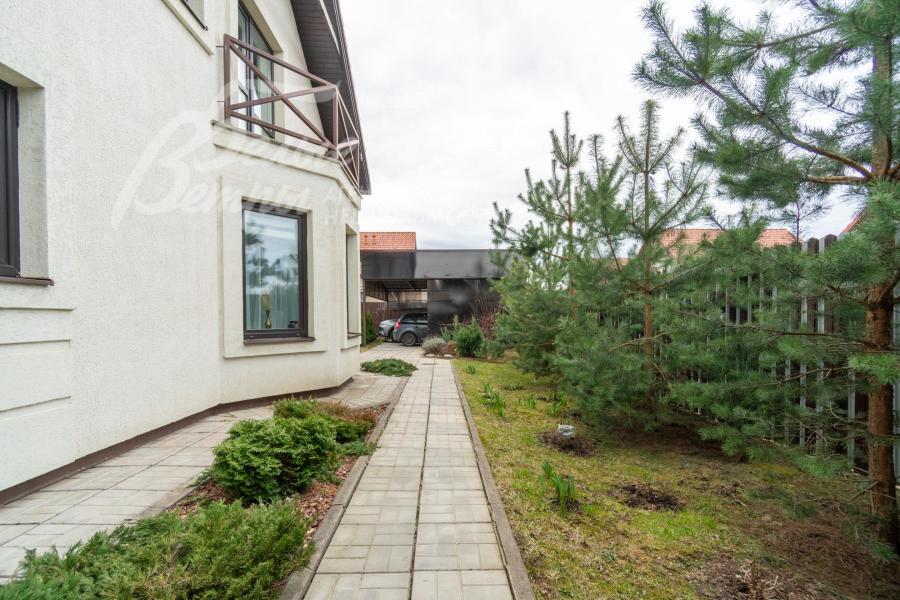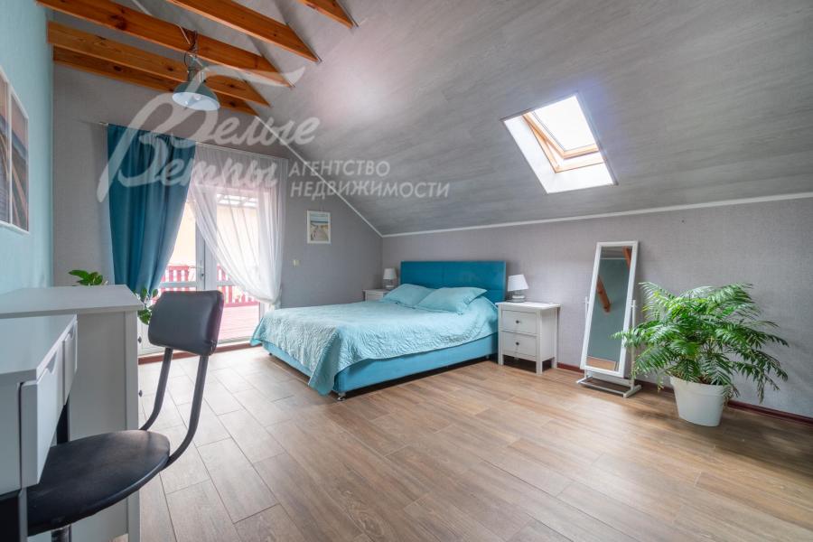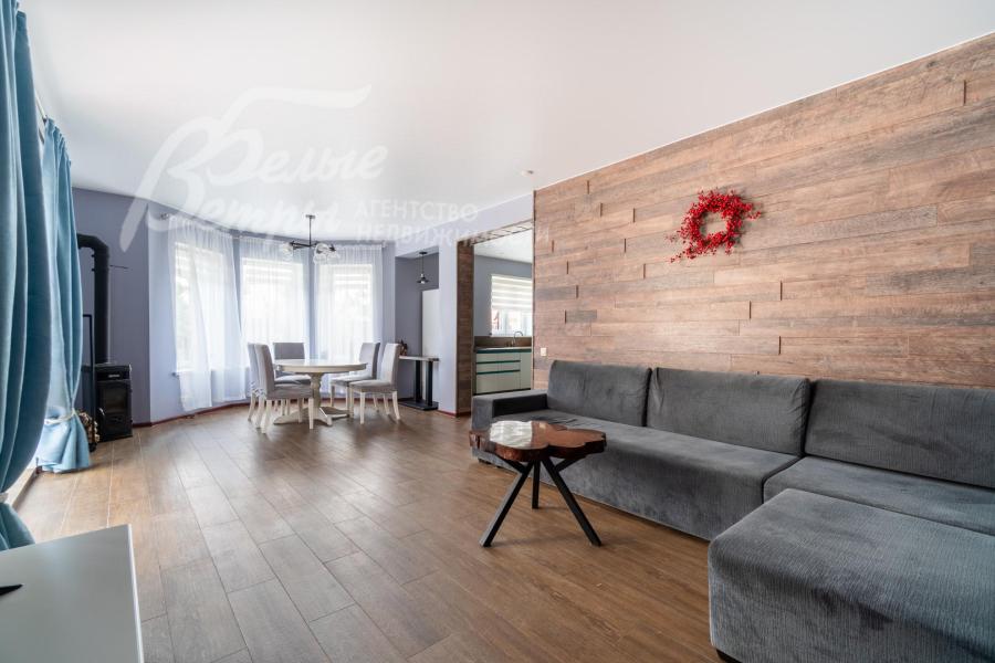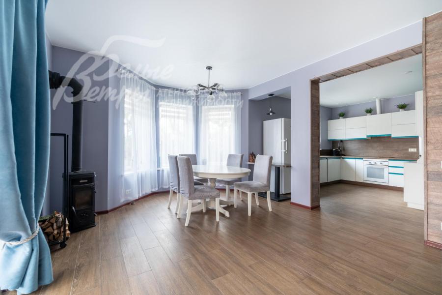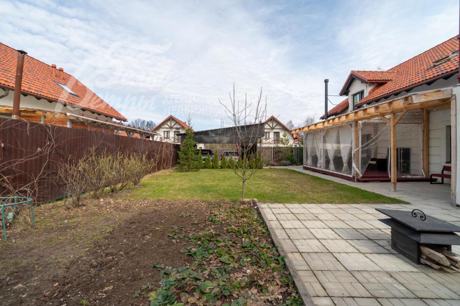 Меблированный дом с привлекательной архитектурой в стиле шале. В доме — удобная функциональная планировка: предусмотрено 4 спальни, одна из них расположена на первом этаже, а общая площадь крытых террас — более 60 кв.м. Одна из террас — на втором этаже двухэтажной пристройки, в которой также запланированы баня с комнатой отдыха. В доме выполнена стильная уютная отделка уровня бизнес-класса, весь пол – тёплый, с водяным подогревом. Дом стоит на благоустроенном участке в престижной локации в 100 м от леса и в 100 в от реки. Участок находится в охраняемом обжитом коттеджном посёлке с рекреационными зонами, центральными коммуникациями, в пешей доступности – остановка общественного транспорта и инфраструктура Новой Москвы.