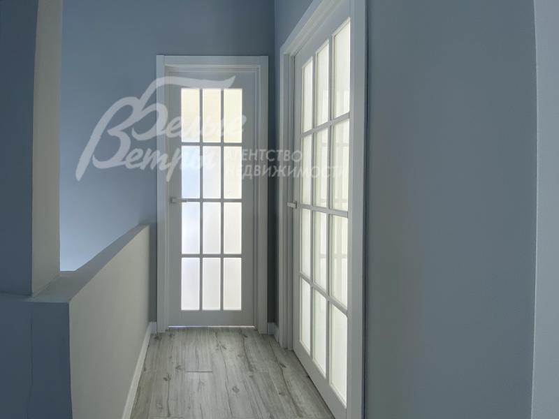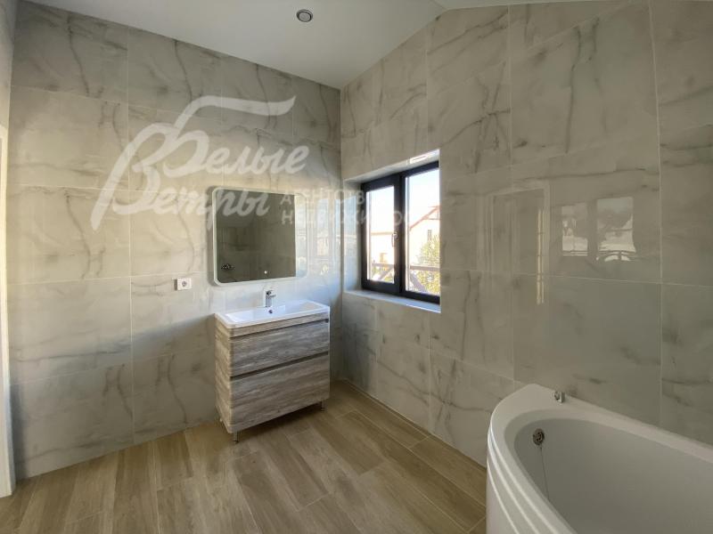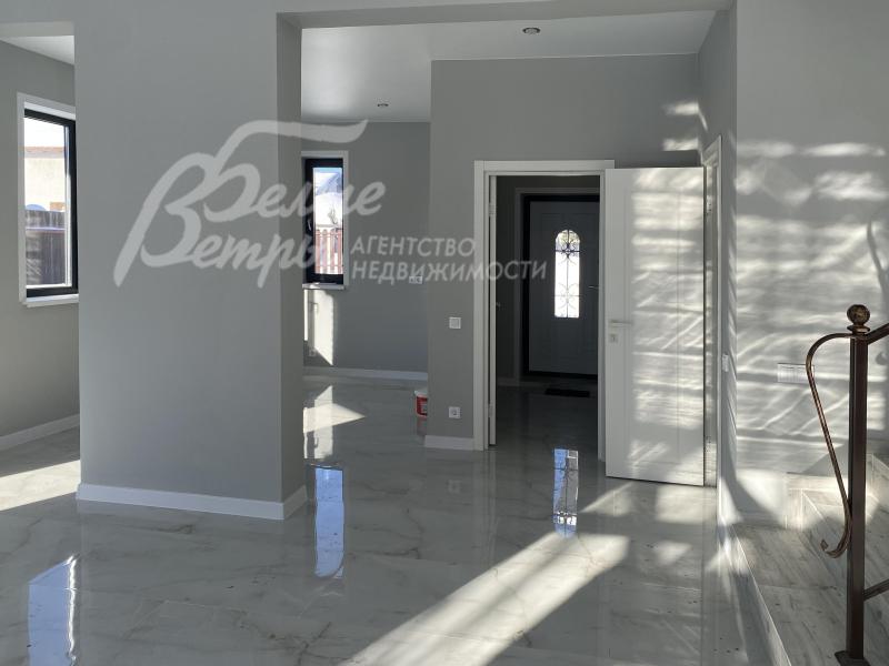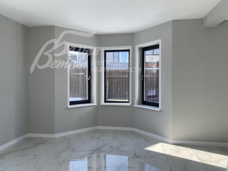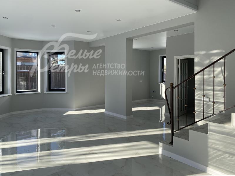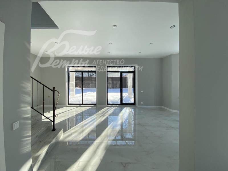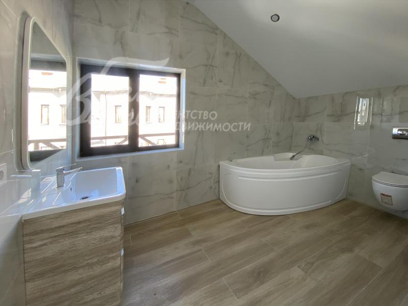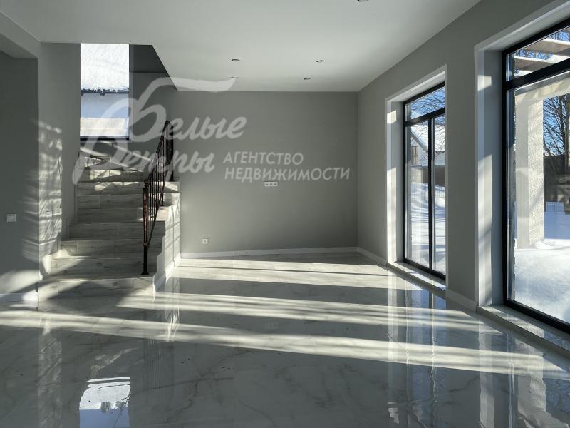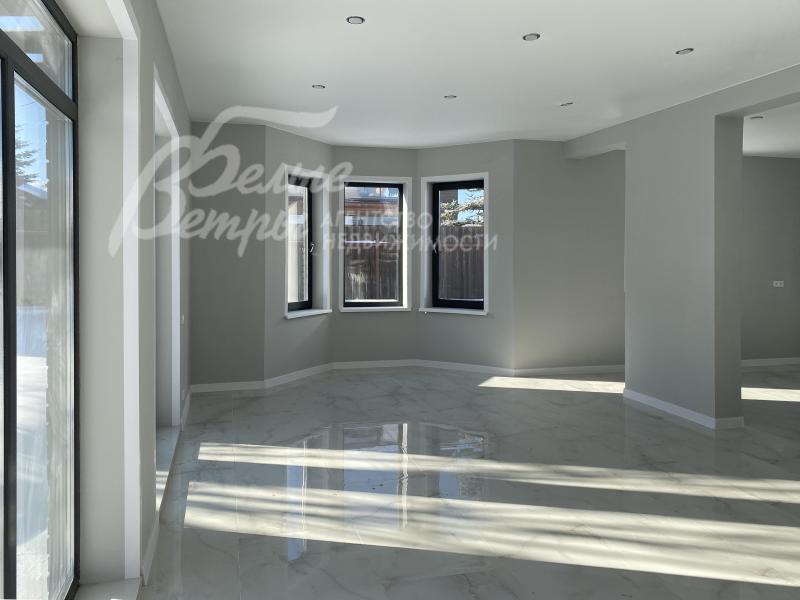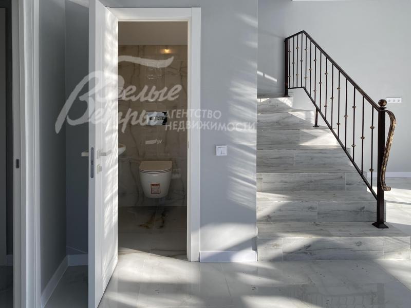Описание внутренней отделки: выполнена современная отделка бизнес-класса. Весь пол - керамогранит с водяным подогревом, стены санузлов и части других помещений - плитка до потолка. В гостиной - остекление от пола. Стены окрашены краской Tikkurila eurocolor. Дорогая входная дверь со стеклом и ковкой. Натяжные потолки со встроенными светильниками. Лестница монолит, отделка ступеней керамогранит, перила художественная ковка. Установлена качественная сантехника. Теплые полы на всех этажах. Межкомнатные двери ProfilDoors,шпонированные окрашены белой краской, высокие плинтуса того же цвета. Подоконники ПВХ, ламинированные под цвет окон.
